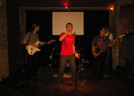 Fever v Aloze: Petr Krumphanzl, Tomáš Ludvíček a Rosťa Máca, v pozadí za bicími Jarda Čech a s kytarou Vláďa Myslík (2005).